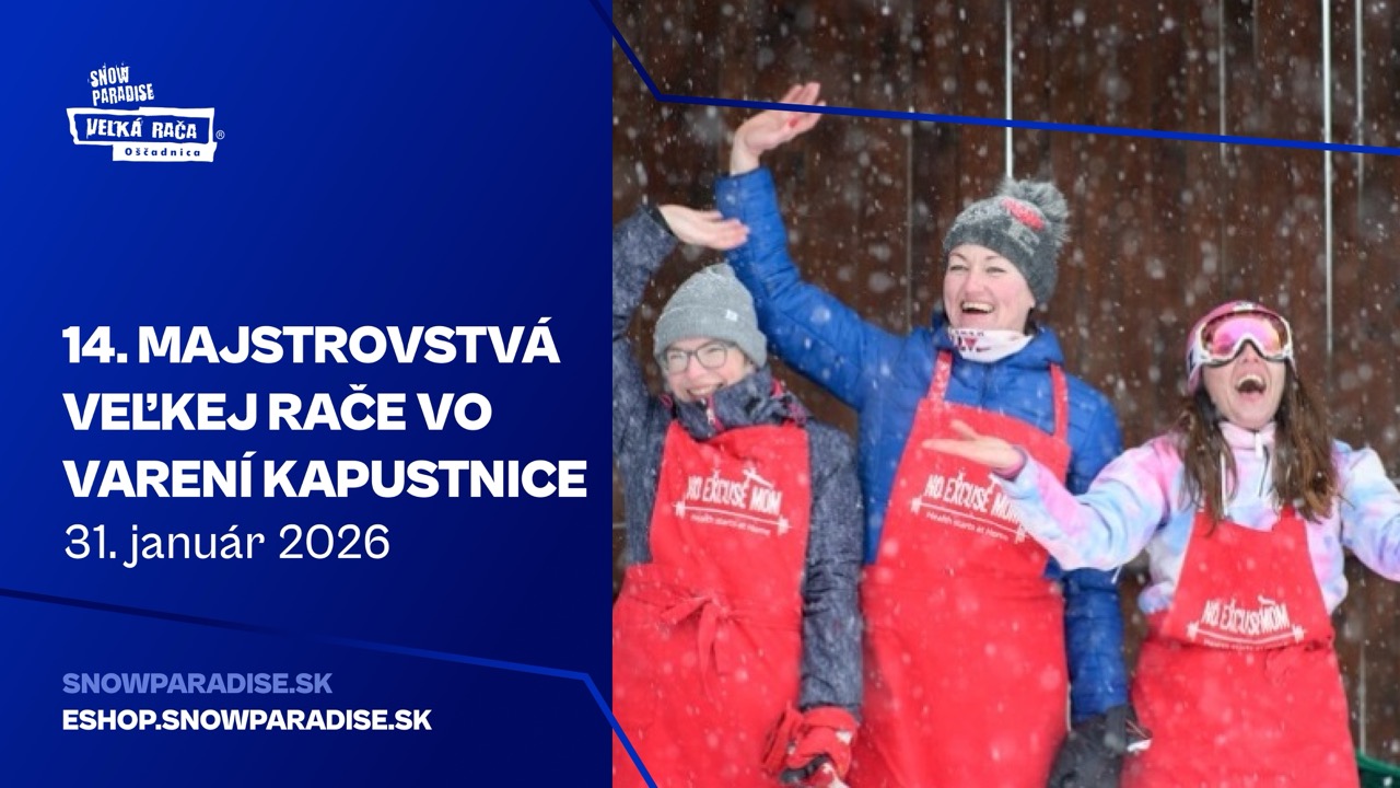 Príďte zažiť atmosféru jedinečnej súťaže vo varení kapustnice priamo na svahu. Sneh, slnko, zábava s rezidentným DJ-om IGIm a výborné jedlo, presne to je to, čo zažijete u nás v Snowparadise posledný januárový víkend. Samozrejme, vítaní sú všetci! Lyžiari, nelyžiari, turisti, či gurmáni.