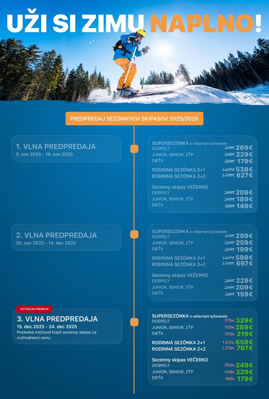 No pozor! ☝️ Jednotlivé vlny predpredaja majú obmedzené trvanie, preto neváhaj a kúp si svoju sezónku v predstihu.