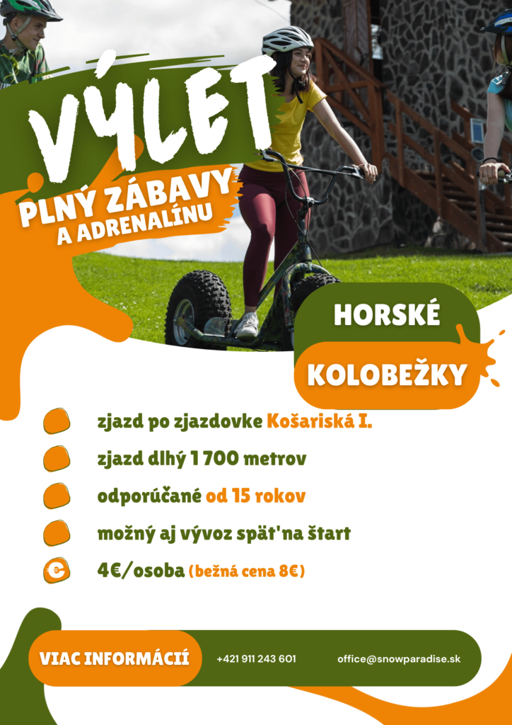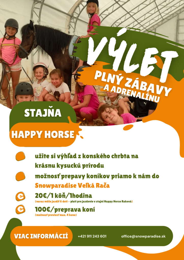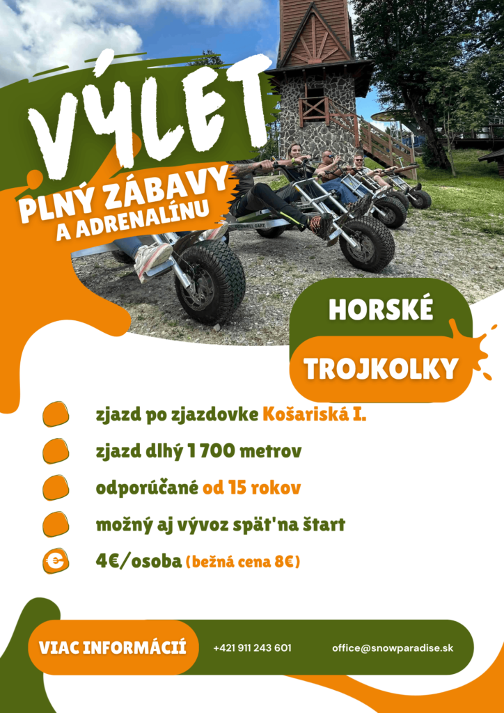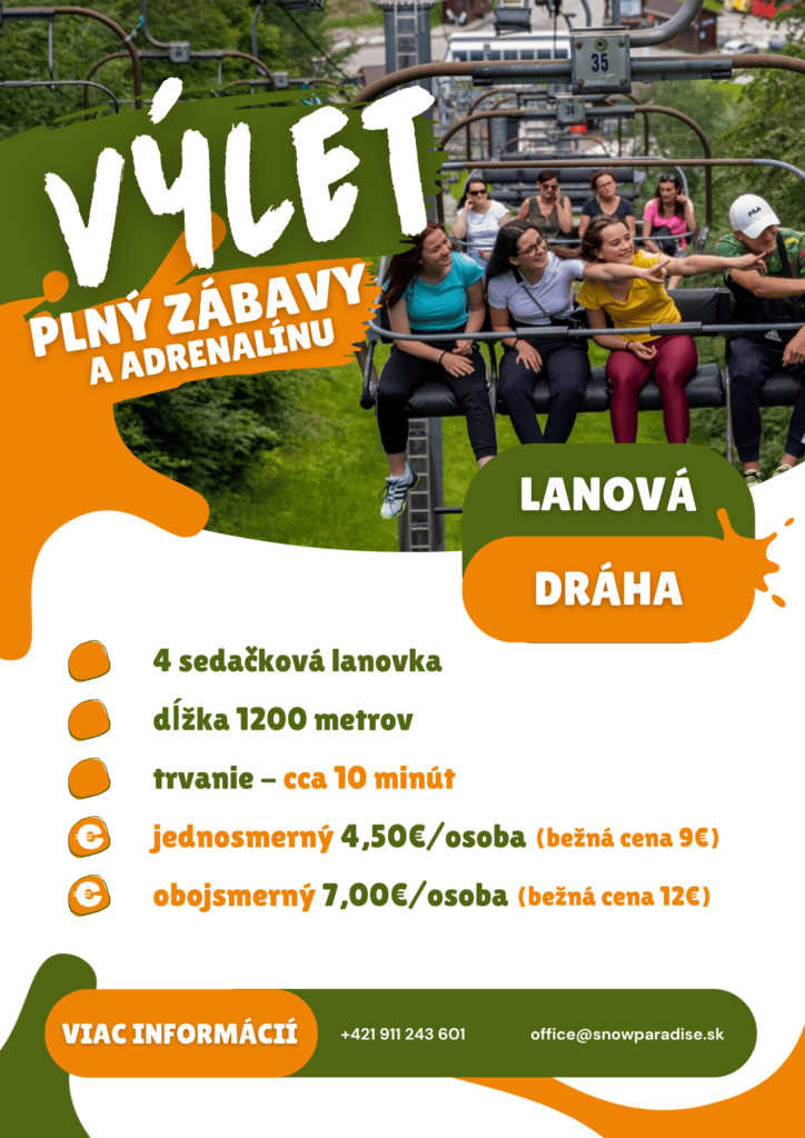 Pre bližšie informácie a rezerváciu nás neváhajte kontaktovať telefonicky +421 911 243 601 alebo emailom na office@snowparadise.sk.